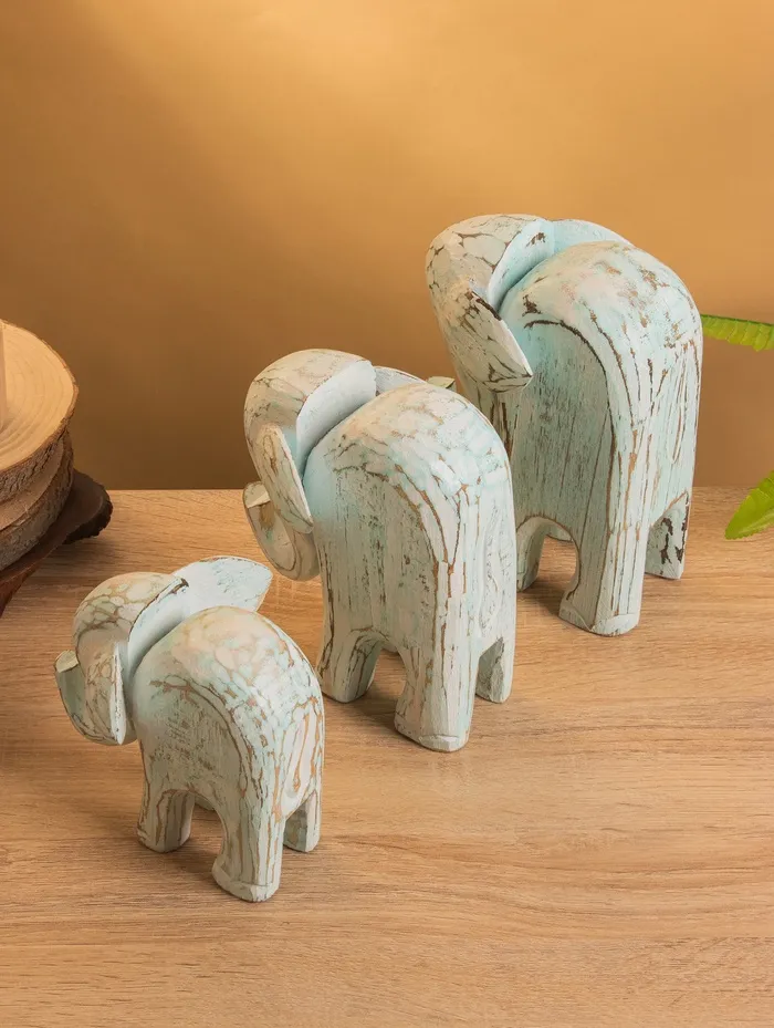 Набор сувенирный «Слоники», h=19 см, h=17 см, h=13 см, дерево, бирюзовый — Характеристики