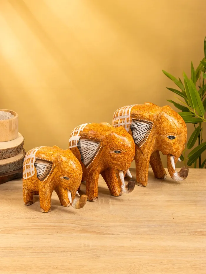 Набор сувенирный «Слоники», h=19 см, h=17 см, h=15 см, дерево, коричневый — Характеристики