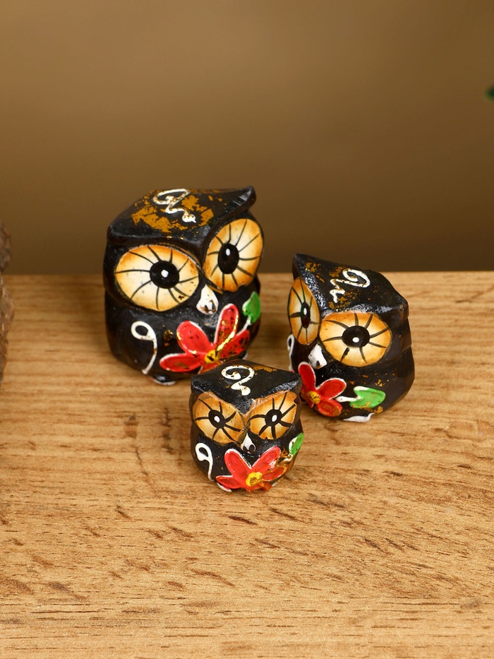 Набор сувенирный "Совята" дерево H 4, 3, 2 см, цв. чёрный — Характеристики