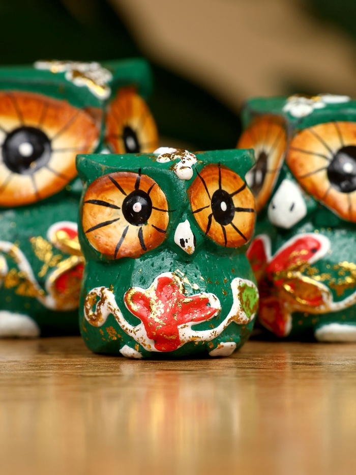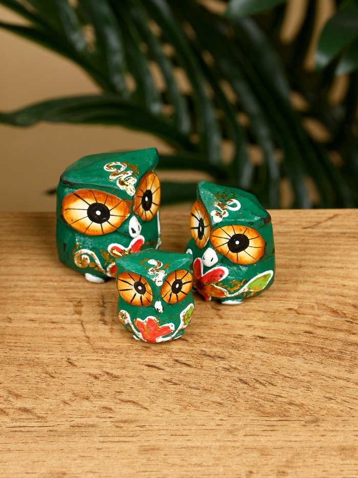 Набор сувенирный "Совята" дерево H 4, 3, 2 см, цв. зелёный — Характеристики