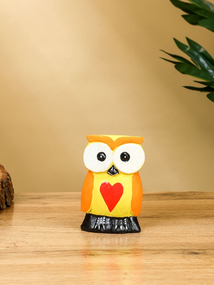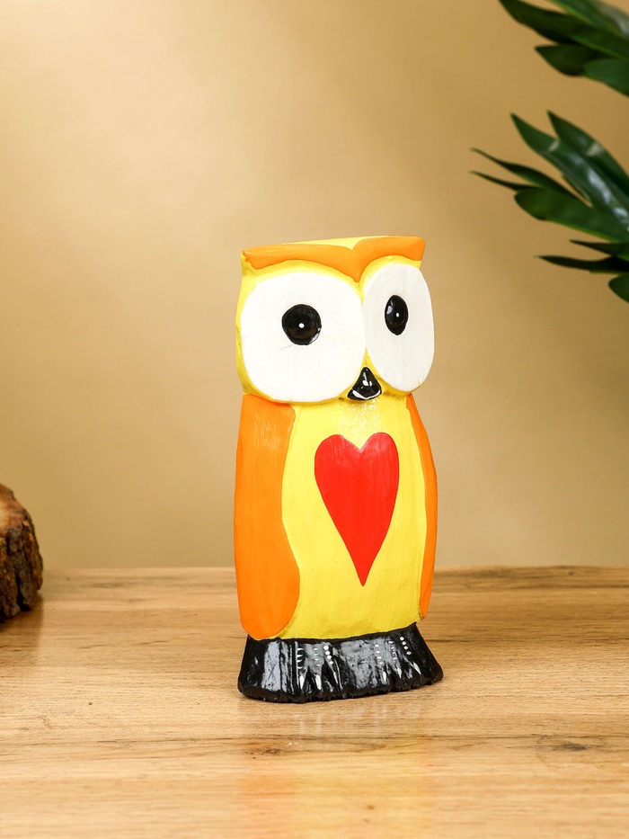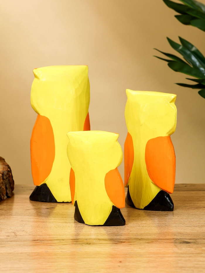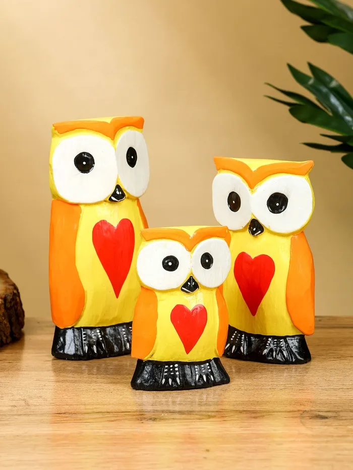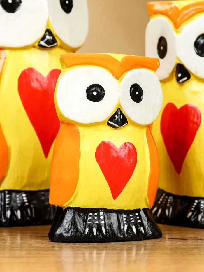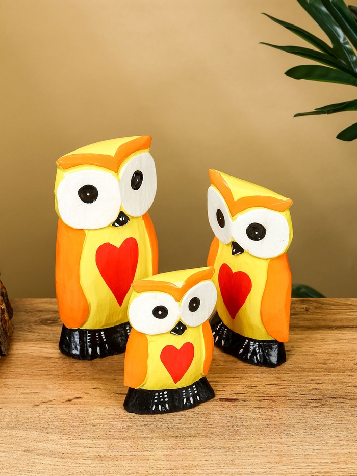 Набор сувенирный «Совята с сердечком», h=15 см, h=12.5 см, h=9.5 см, дерево, оранжево-желтый — Характеристики