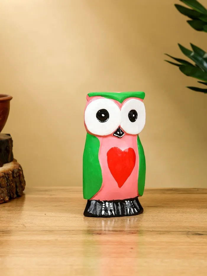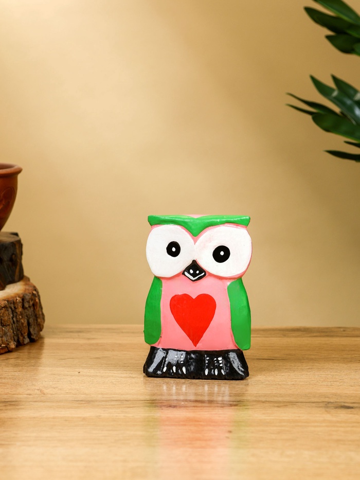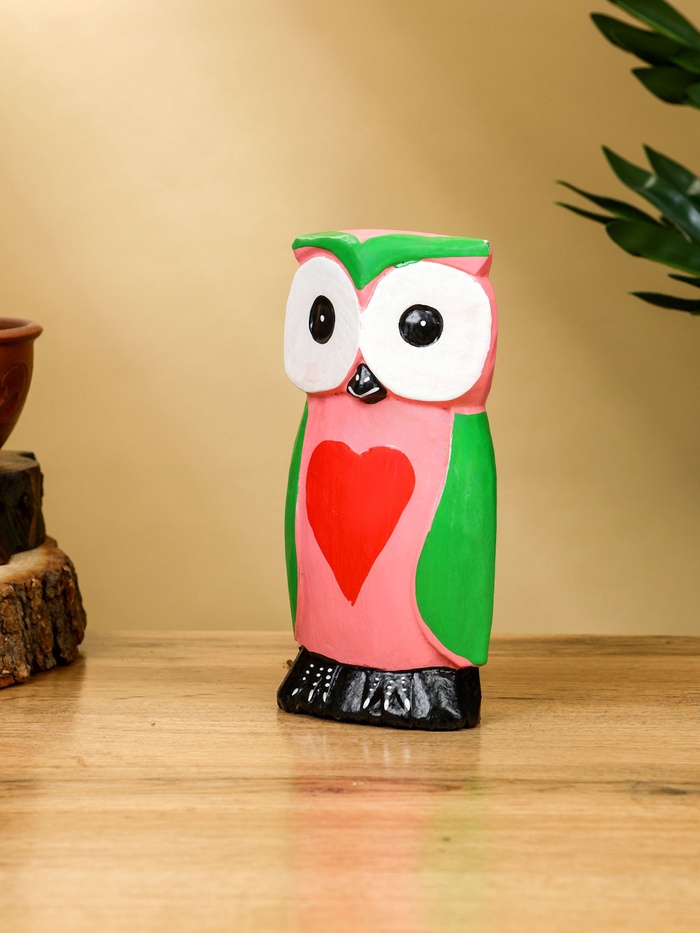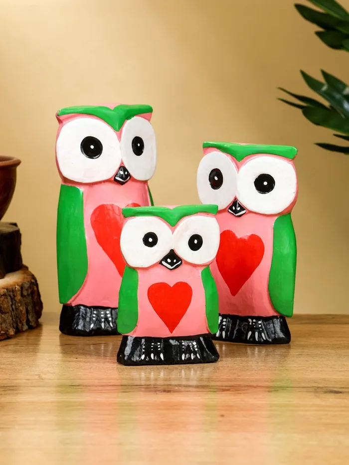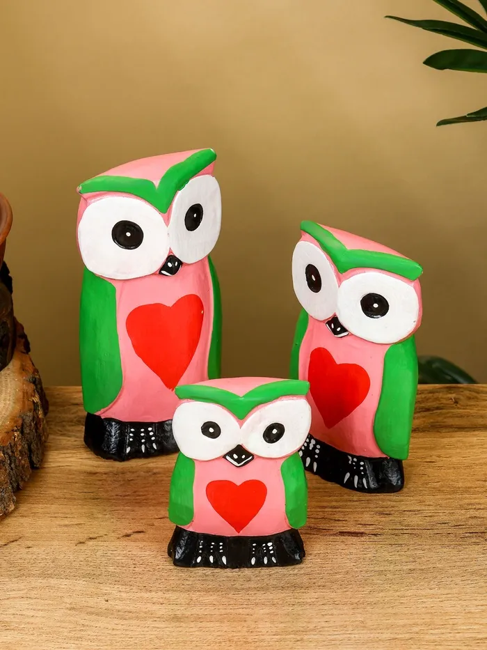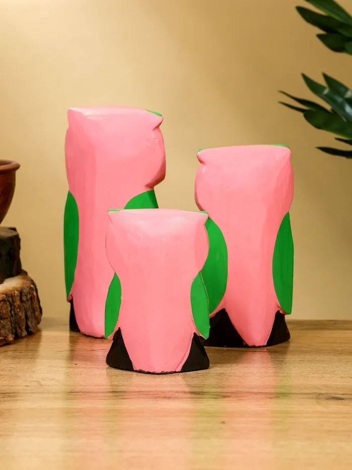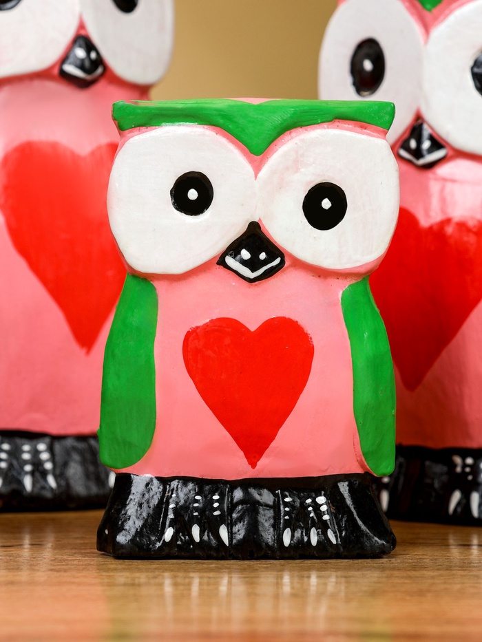 Набор сувенирный «Совята с сердечком», h=15 см, h=13 см, h=10 см, дерево, розово-зелёный — Характеристики