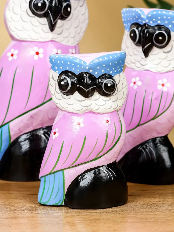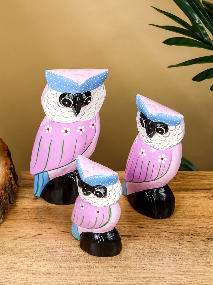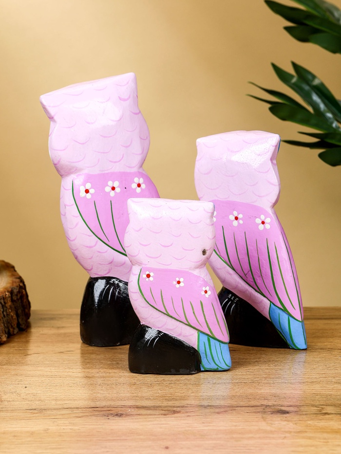 Набор сувенирный «Совы», h=17 см, h=14.5 см, h=11 см, дерево, сиреневый — Характеристики