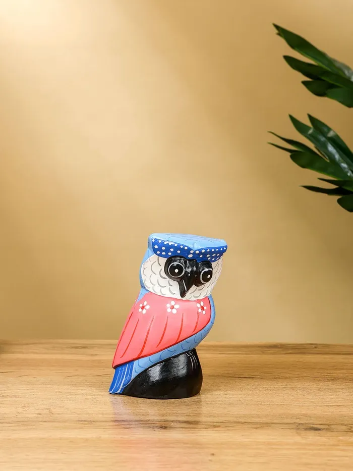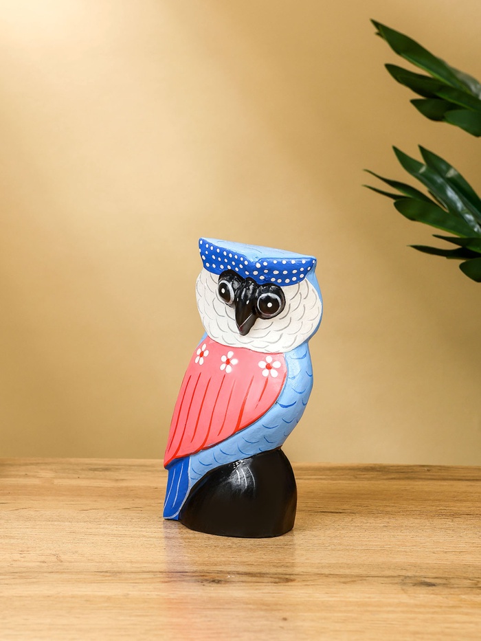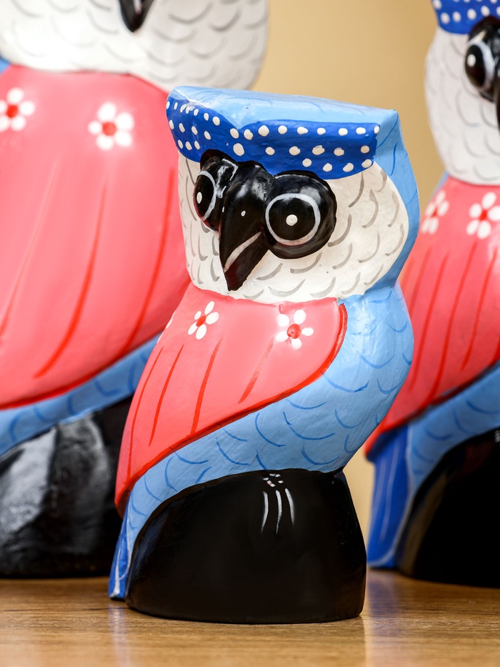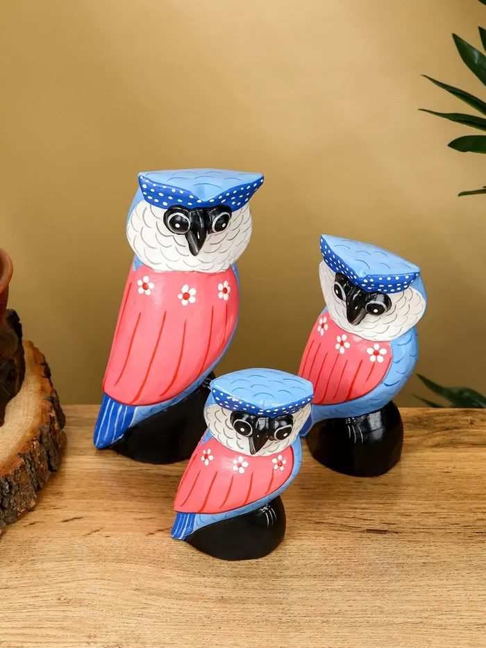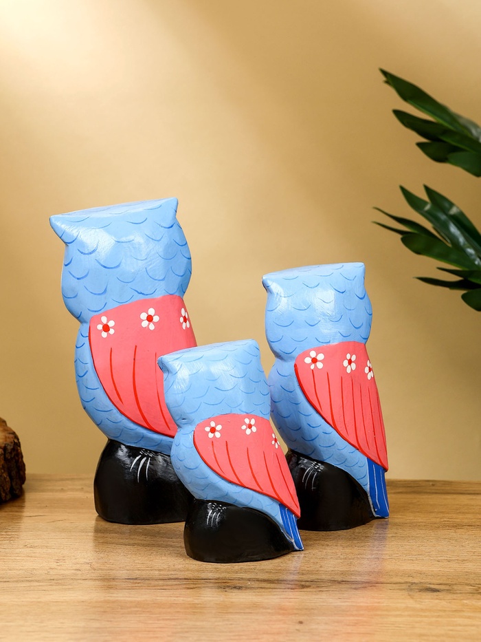 Набор сувенирный «Совы», h=18 см, h=14 см, h=11 см, дерево, розово-синий — Характеристики