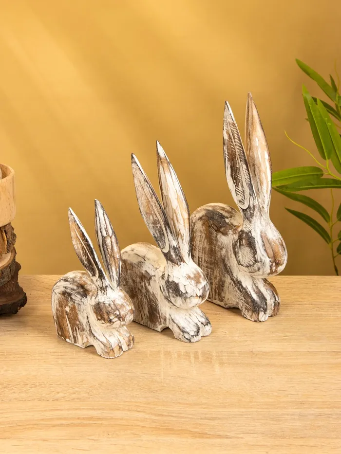 Набор сувенирный "Зайцы" дерево, h - 25,20 и 15 см — Характеристики