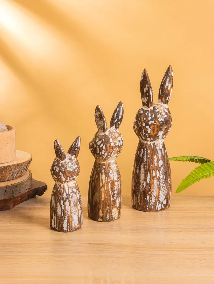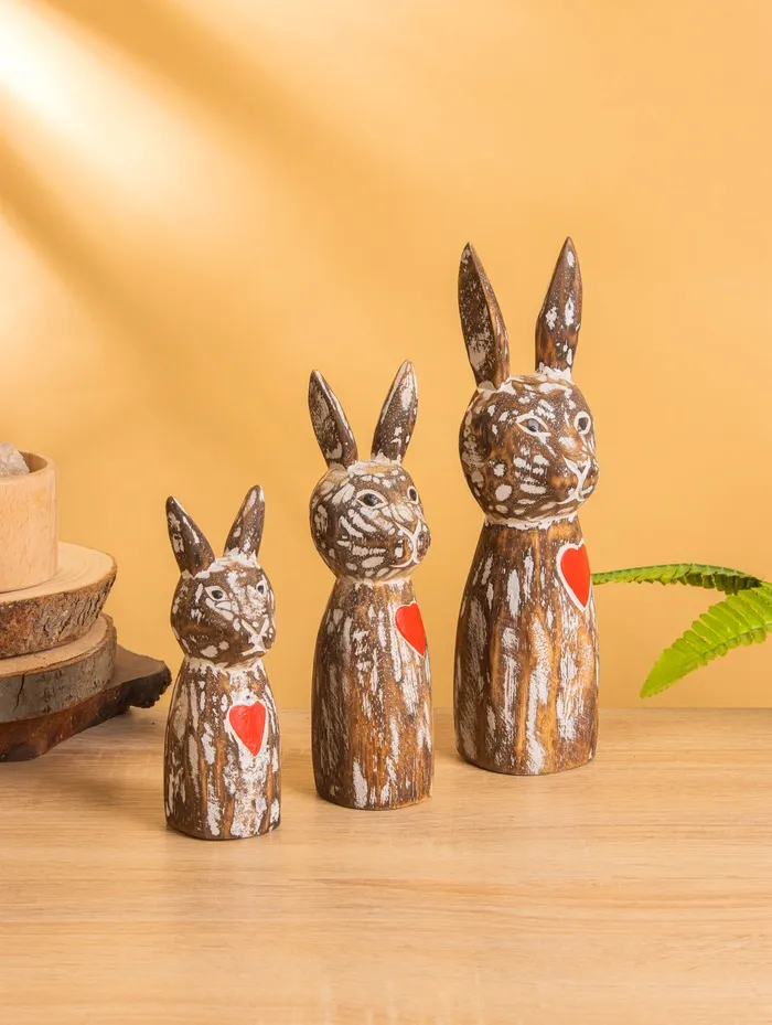 Набор сувенирный «Зайцы с сердечком», h=25 см, h=20 см, h=15 см, дерево, коричневый — Характеристики
