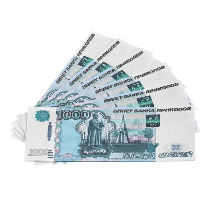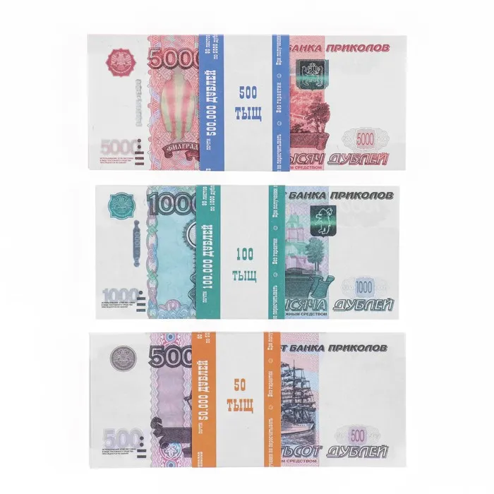 Сувенирные купюры представляют собой макет с изображением денег, которые используются для проведения розыгрышей, рекламы, оформления подарков и многого другого.