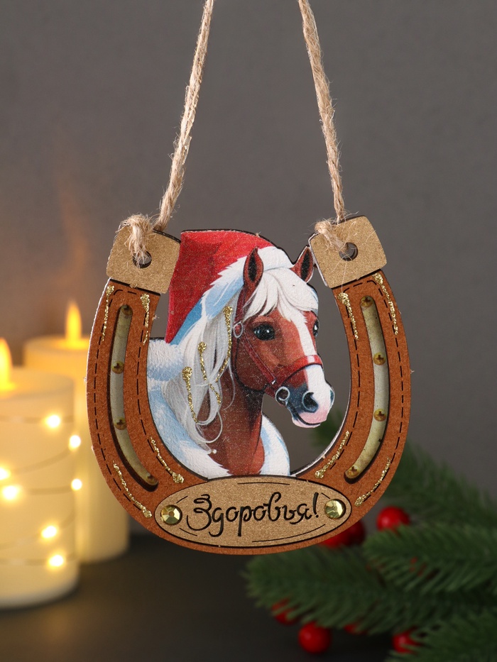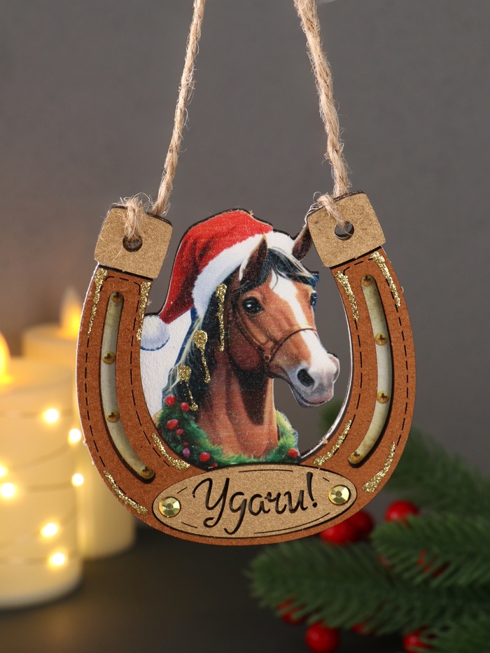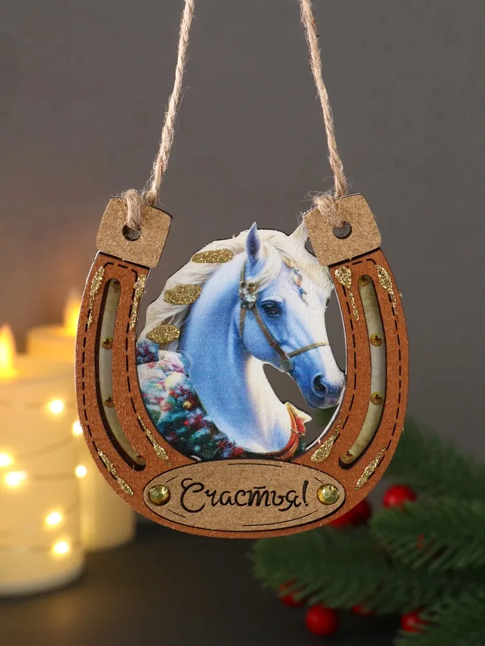 Ёлочная игрушка, подвеска «Подкова, на счастье», керамика, 7.5×8 см