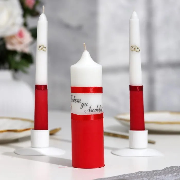 Набор свадебных свечей "Совет да любовь" красный: родительские 1,8х17,5; очаг 4х13,5 — Характеристики