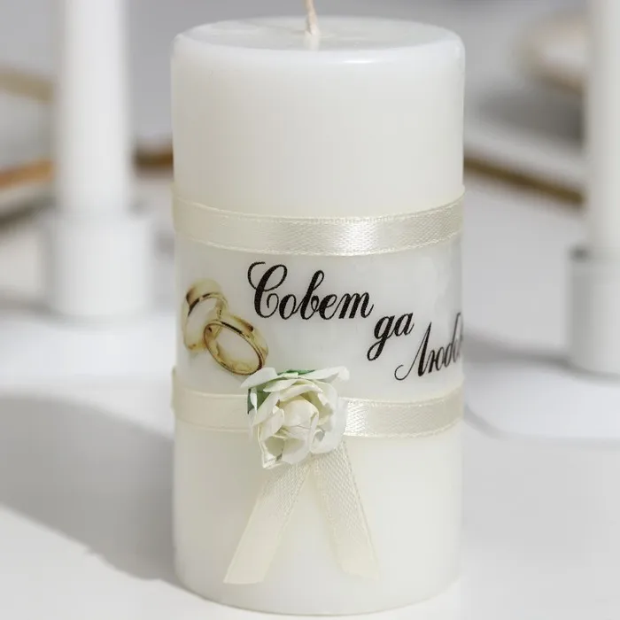 Набор свадебных свечей "Совет да любовь с лентой" шампань: родительские 1,8х15; очаг 5,2х9,5 — Характеристики