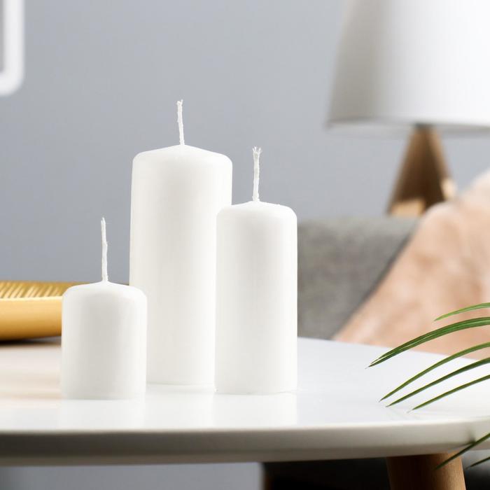 Набор: свеча - -цилиндр, 4×5 см, 4×9 см, 5×11.5 см, 3 шт., белая — Характеристики