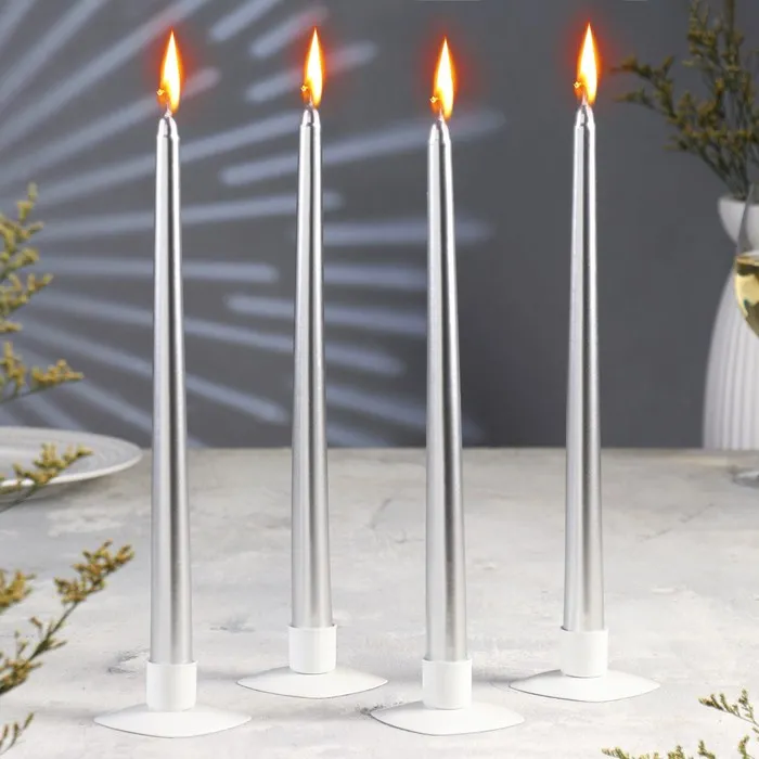 Набор Свечей античных, 2,2х 30 см, 4 штук, серебряный металлик — Характеристики