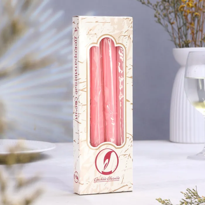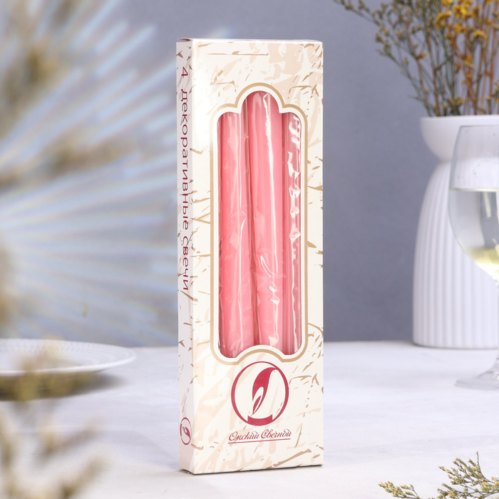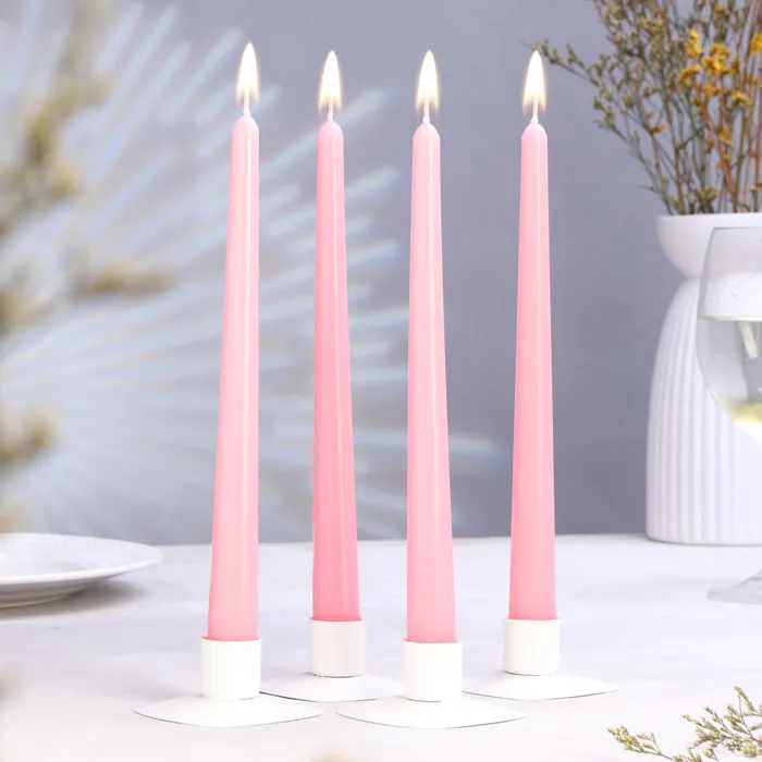 Набор свечей античных, 2,3х 24,5 см, 5 ч, 55 г, 4 штуки, светло-розовая — Характеристики