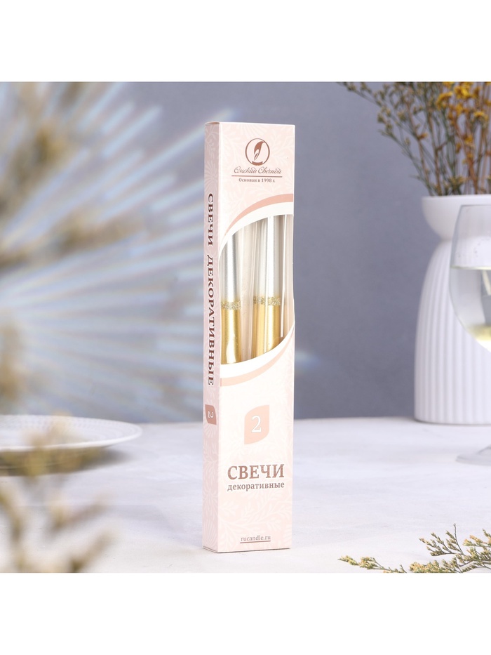 Набор свечей античных, 2.3×24.5 см, 5 ч, 55 г, 2 шт., серебристо-золотой — Характеристики