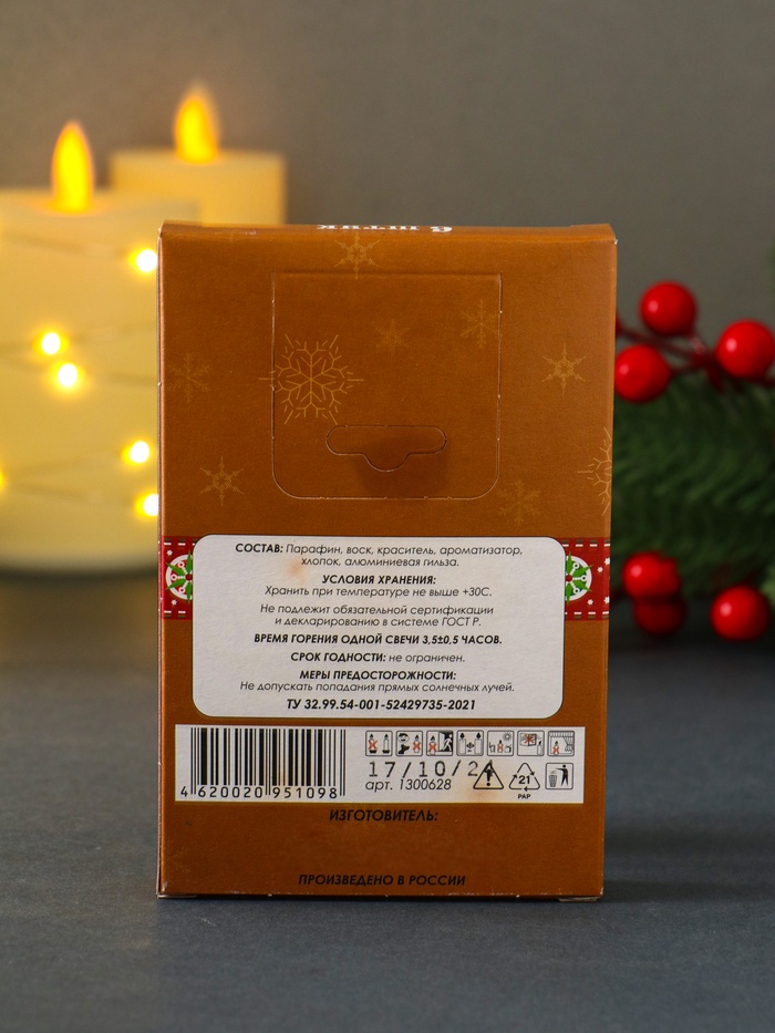 Набор свечей ароматических чайных «Рождественский пряник», 6 шт. — Характеристики