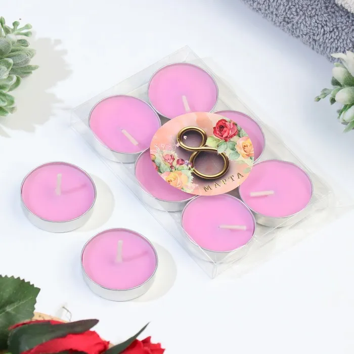 Набор свечей чайных ароматических, 6 шт, роза, 8 марта