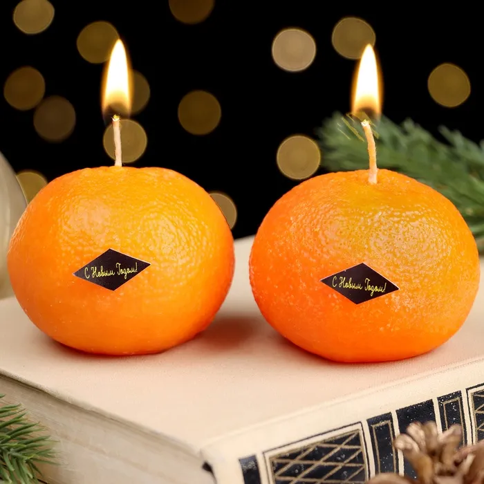 Набор свечей декоративных «Два мандарина», в деревянном ящике — Характеристики