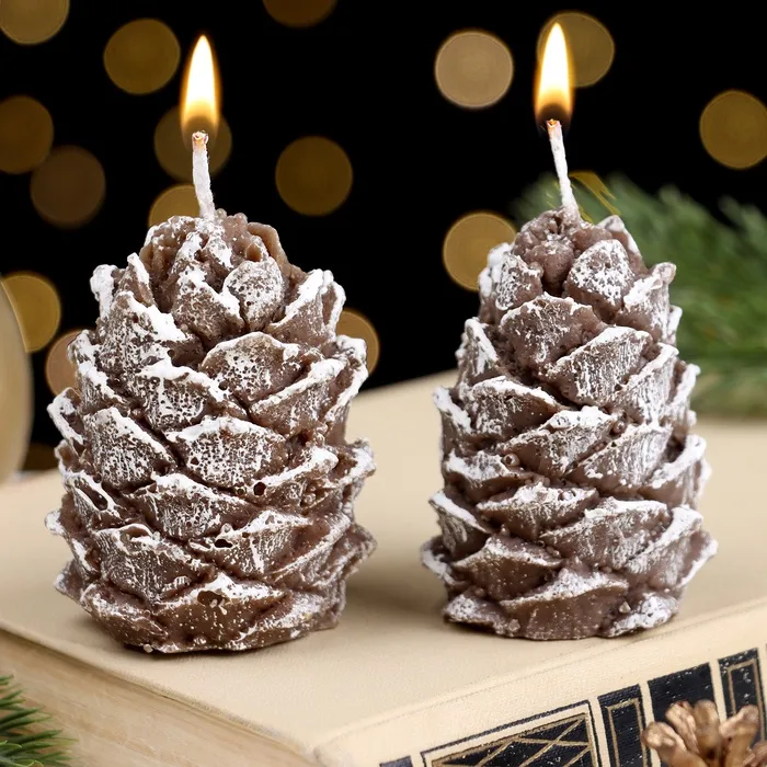 Набор свечей декоративных «Две шишки», в деревянном ящике — Характеристики