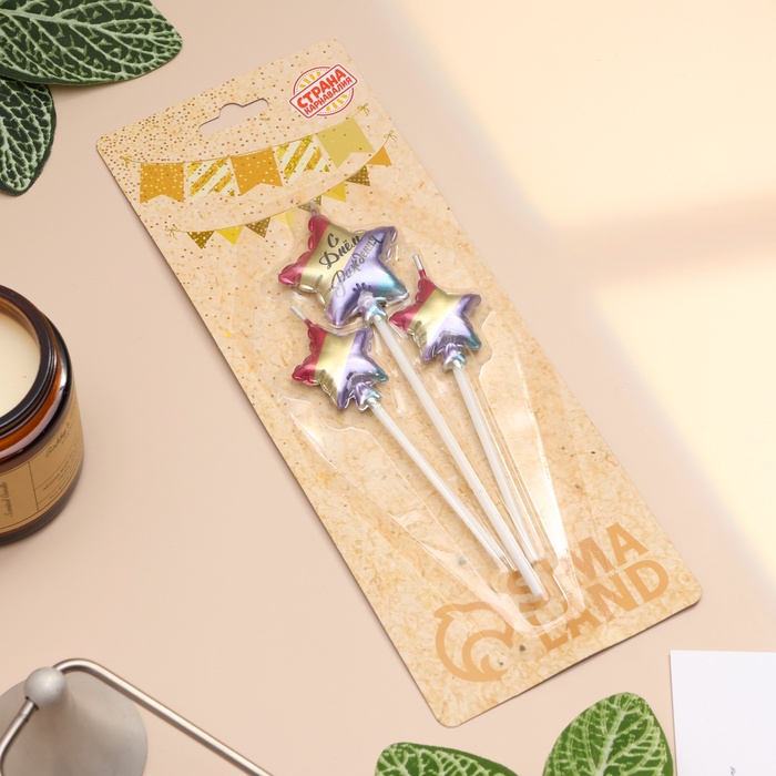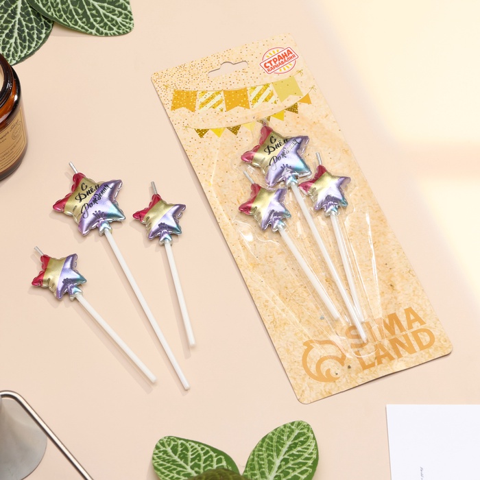 Набор свечей для торта, 3 шт. «Воздушный шарик. Звезда», разноцветные