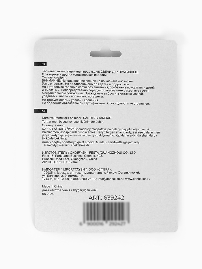 При транспортировке в зимнее (холодное) время года коробки со свечами вскрывать после того, как они постоят на Вашем теплом складе не менее суток.