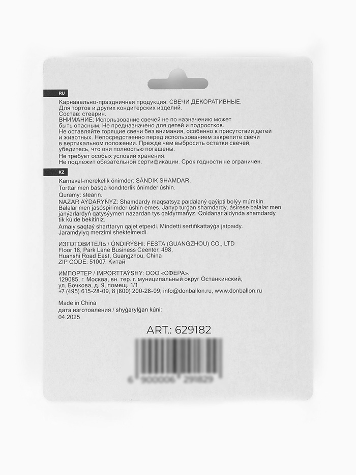 При транспортировке в зимнее (холодное) время года коробки со свечами вскрывать после того, как они постоят на Вашем теплом складе не менее суток.