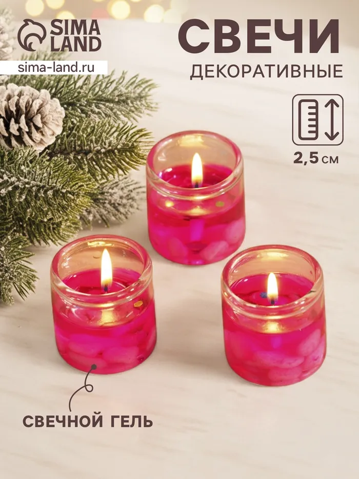 Набор свечей гелевых «Конь. Мечтай. Сияй. Зажигай», 3 шт., розовые, 2.5×2.5×2.5 см — Характеристики
