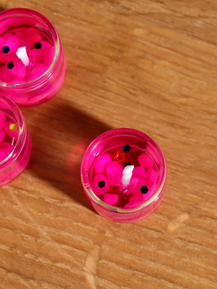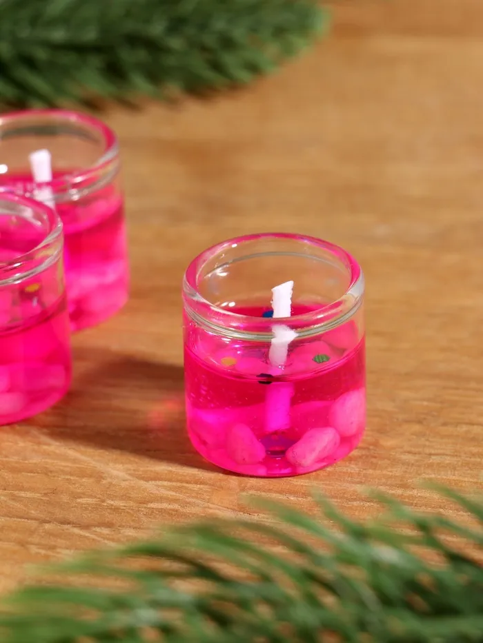 Позвольте мягкому сиянию наполнить ваш дом теплом и вдохновением с этим набором из трёх изящных свечей. Их нежный розовый оттенок и компактная кубическая форма создают атмосферу уюта, а гелевый состав гарантирует долгое и ровное горение без напоминания о суете.