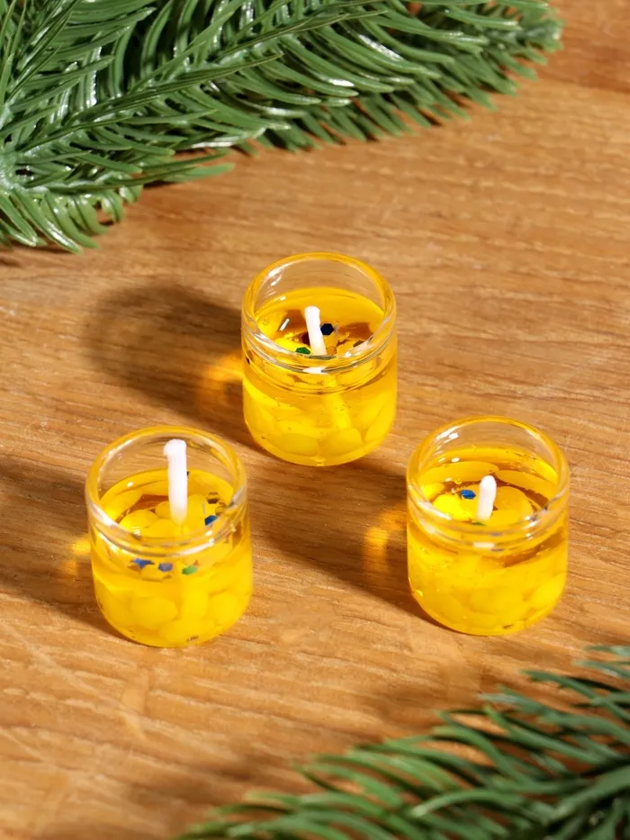Пусть золотистое сияние этих изящных свечей принесет в ваш дом атмосферу процветания и удачи. Три аккуратных кубика из прозрачного геля с благородным золотым оттенком создадут волшебную игру света, превращая обычный вечер в маленький праздник.