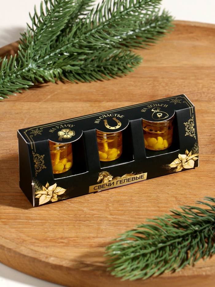Набор свечей гелевых «Золотой конь. На удачу», 3 шт., золотые, 2.5×2.5×2.5 см — Характеристики