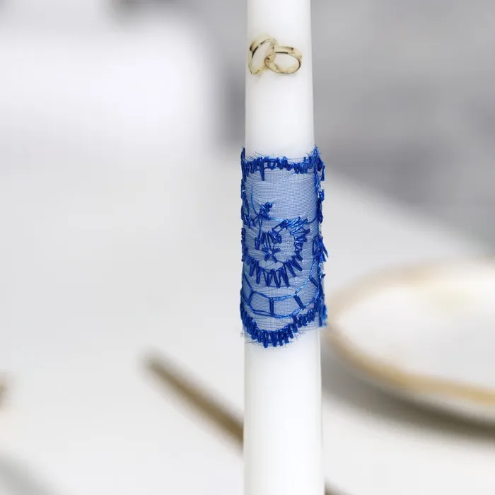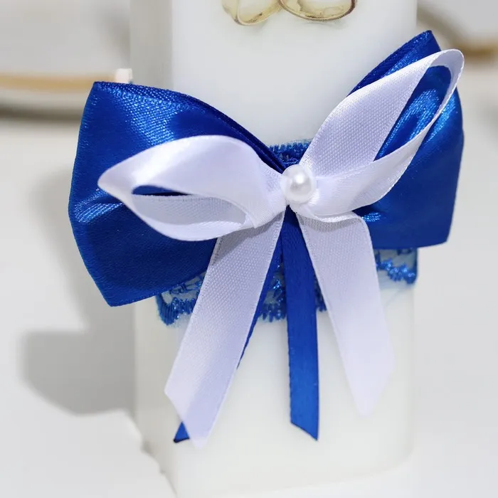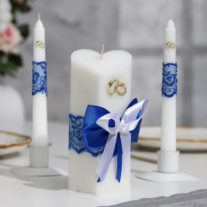 Набор свечей "Кружевной с бантиком" синий: домашний очаг 6,8х15см, родительские 1,8х17,5см — Характеристики