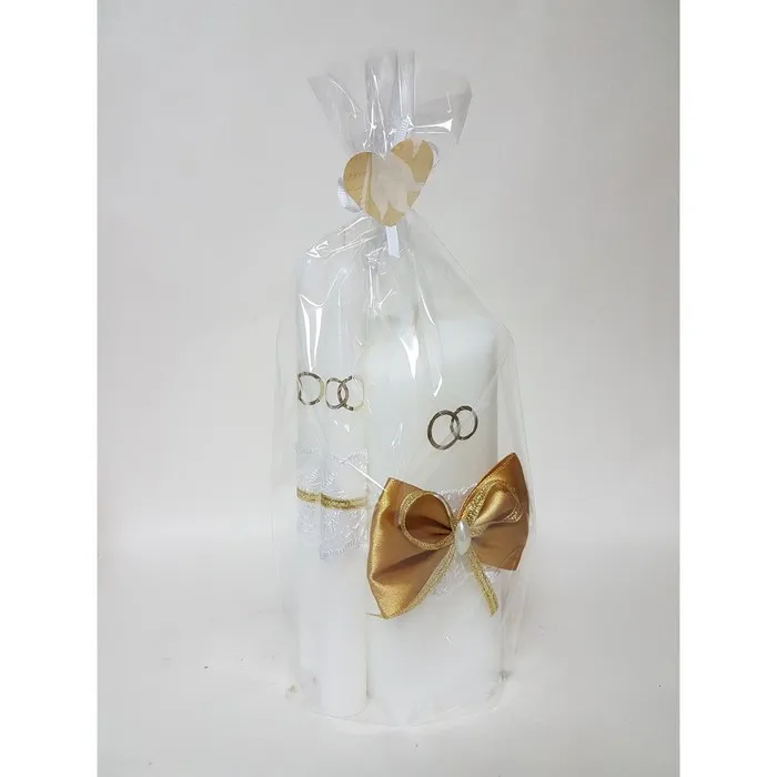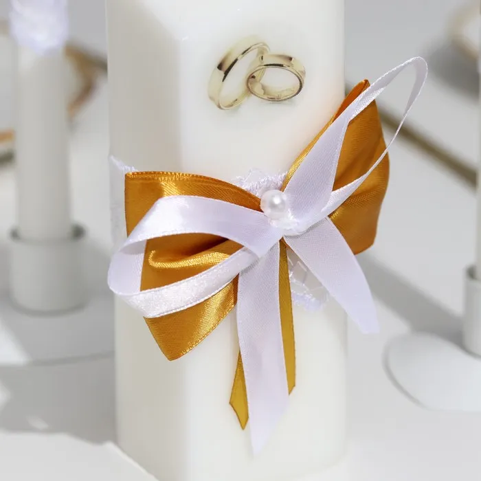 Набор свечей "Кружевной с бантиком" золотой: домашний очаг 6,8х15см, родительские 1,8х17,5см — Характеристики
