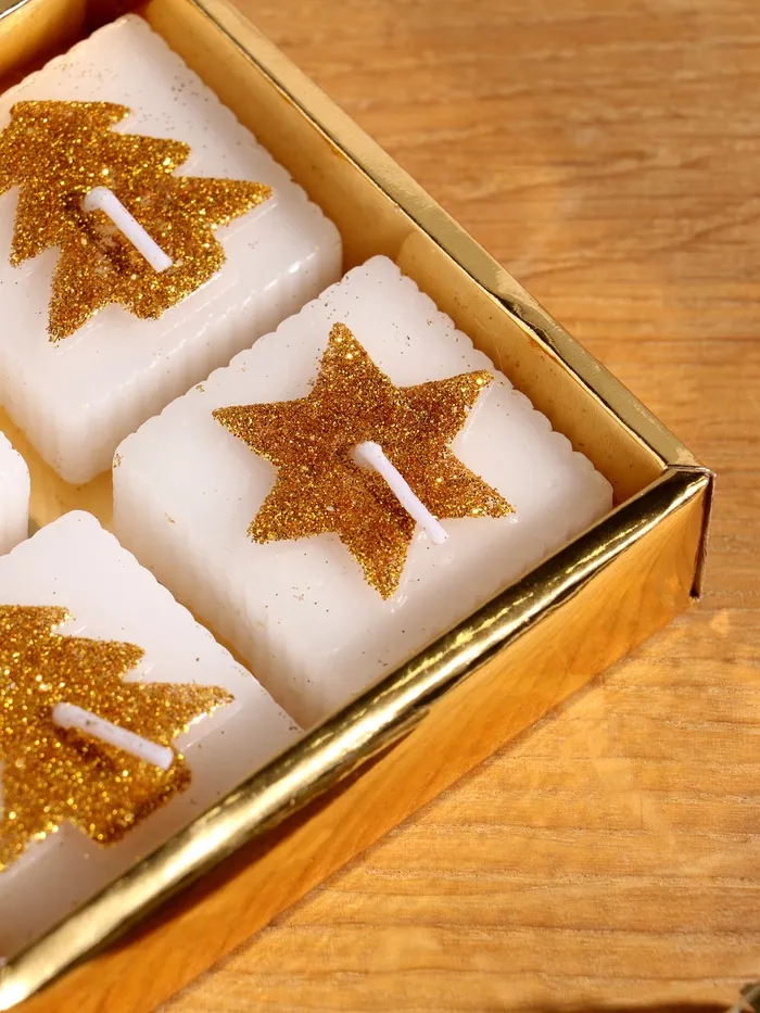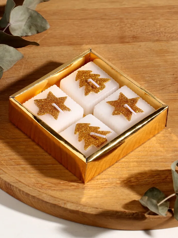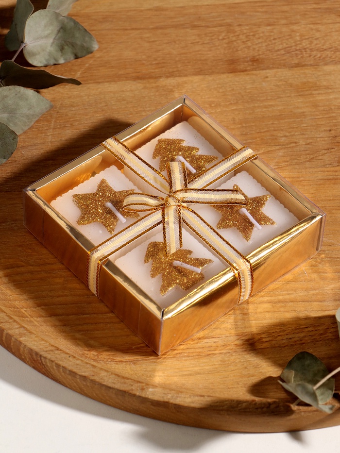 Набор свечей «Марки. Золотые ёлочки и звёзды», 4 шт., 10.5×10.5×3 см