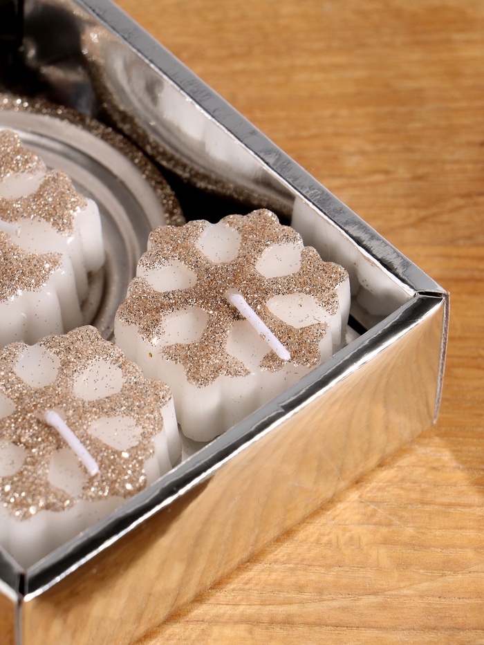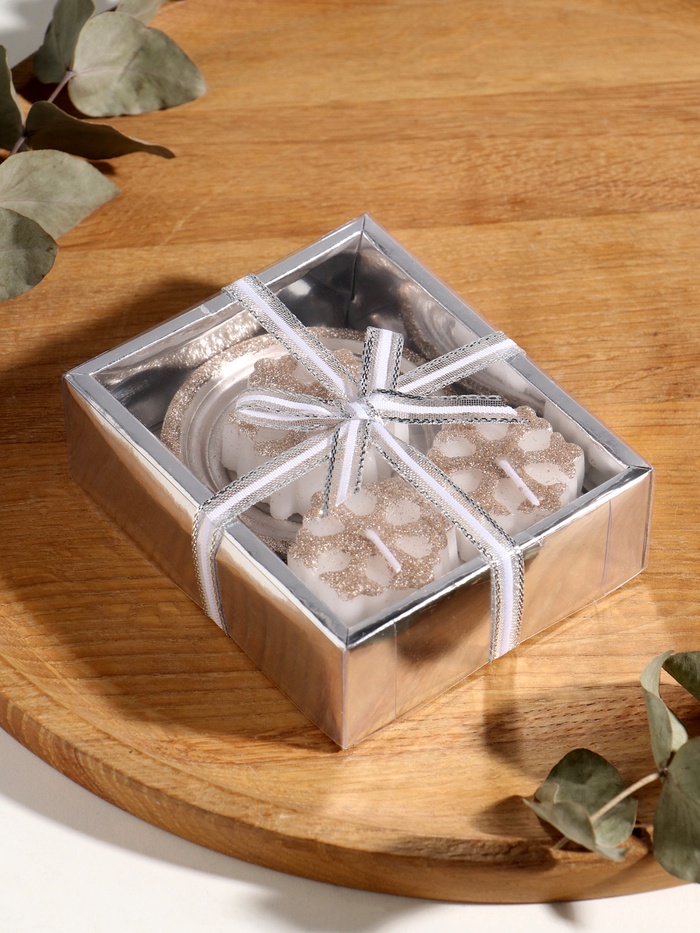 Набор свечей «Снежинки и подсвечник», 3 шт., 12×10×4 см
