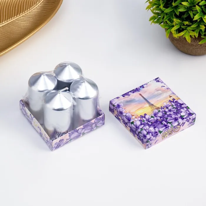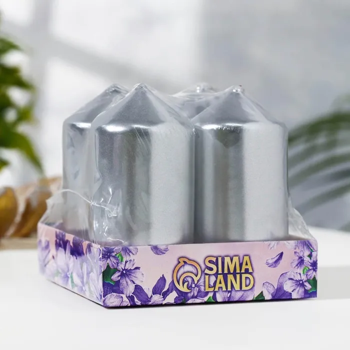 Набор свечей "Столбик", 4 штуки, серебряный 7х3,8см — Характеристики