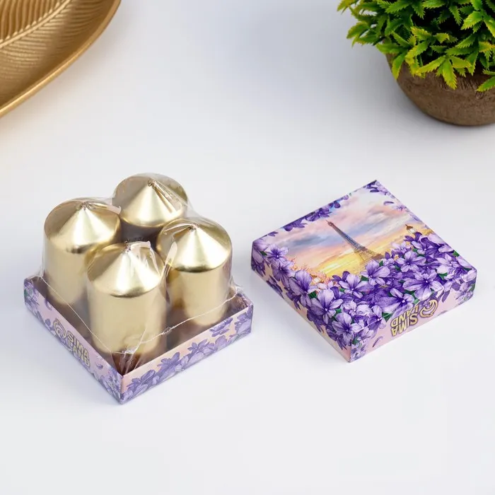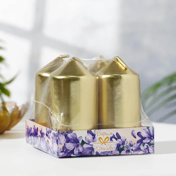 Набор свечей "Столбик", 4 штуки, золотой 7х3,8см — Характеристики