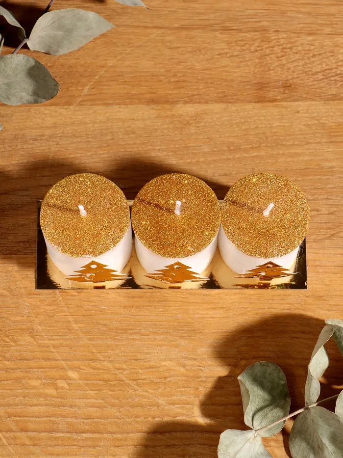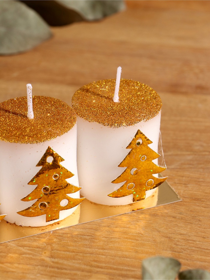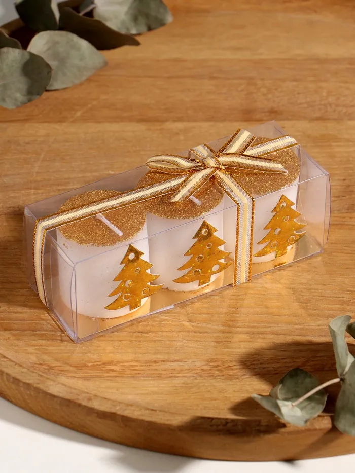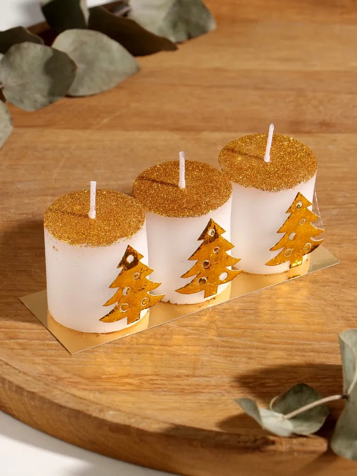 Набор свечей «Столбики. Золотые ёлочки», 3 шт., 13×4.5×4.5 см