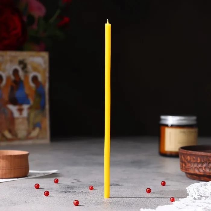 Эту свечу вы сможете использовать как в церковном, так и в домашнем обиходе для религиозных обрядов. Она не содержит ароматических примесей и красителей.