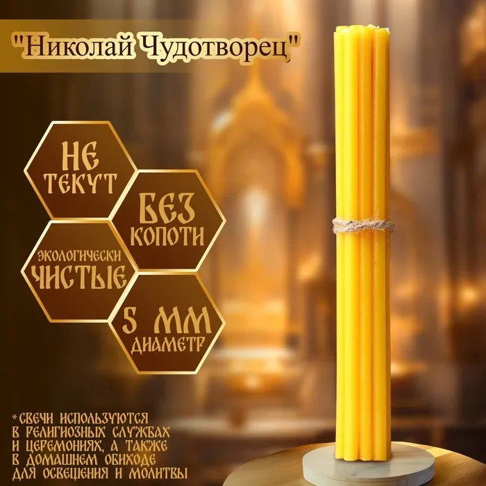 Набор свечей церковных "Николай Чудотворец" для домашней молитвы, парафин, 12 шт