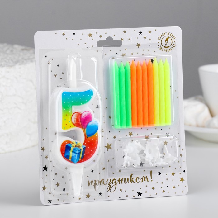 Набор свечей Цифра 5 + классические, 10 см — Характеристики