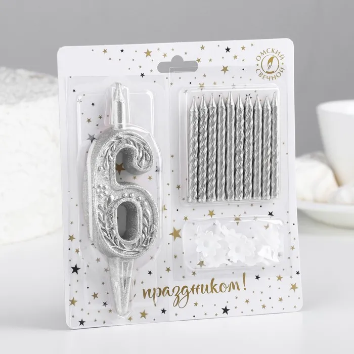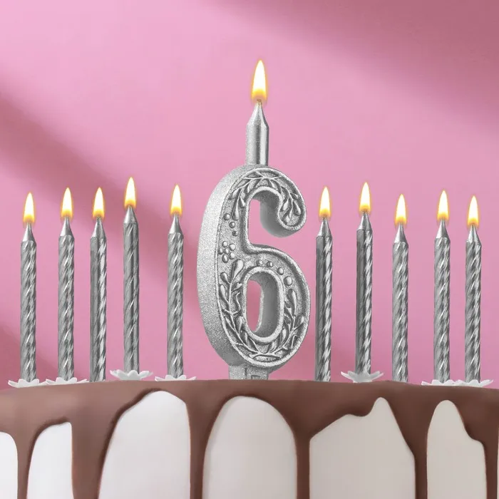 Набор свечей Цифра 6 + классические, серебро, 10 см — Характеристики
