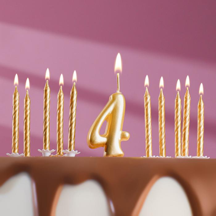 Набор свечей Цифра 8 + классические, золото, 10 см — Характеристики