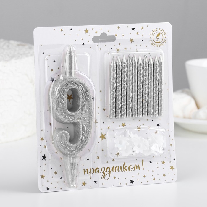 Набор свечей Цифра 9 + классические, серебро, 10 см — Характеристики