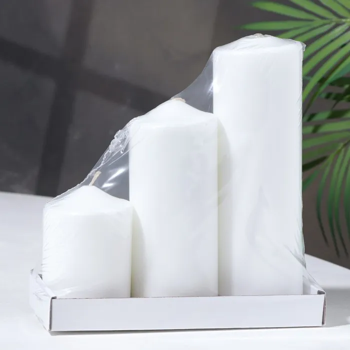 Набор свечей - цилиндров 3в1 (6х14 см, 6х19 см, 6х8,5 см), белый — Характеристики