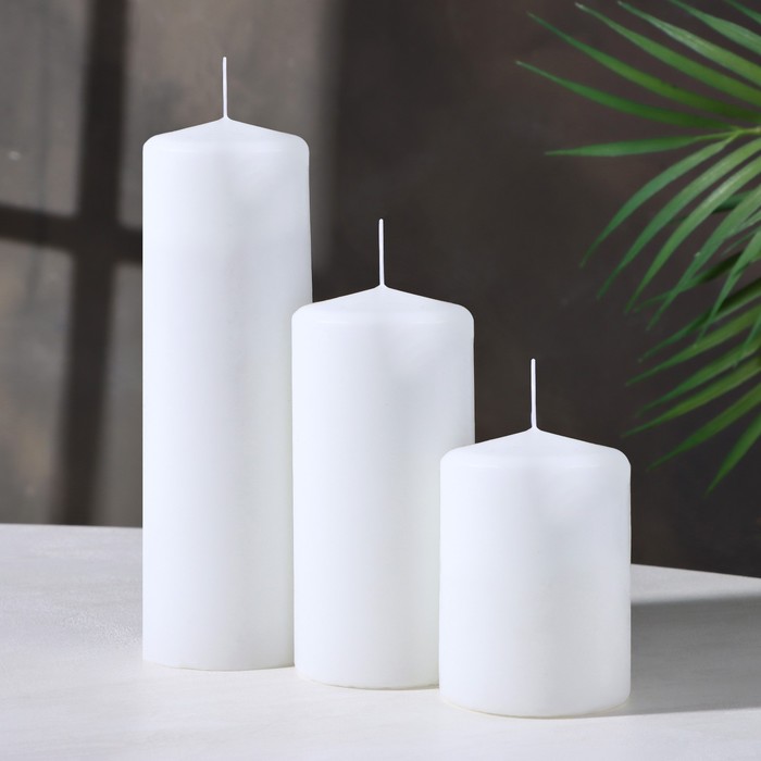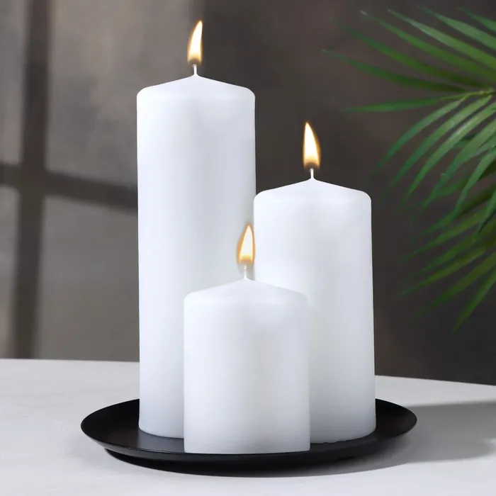 Набор свечей-цилиндров на подставке "Интерьерный", 3 шт, белый — Характеристики