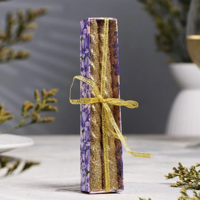 Набор свечей витых, 1,5х 15 см, 2 штуки, блестка, золото