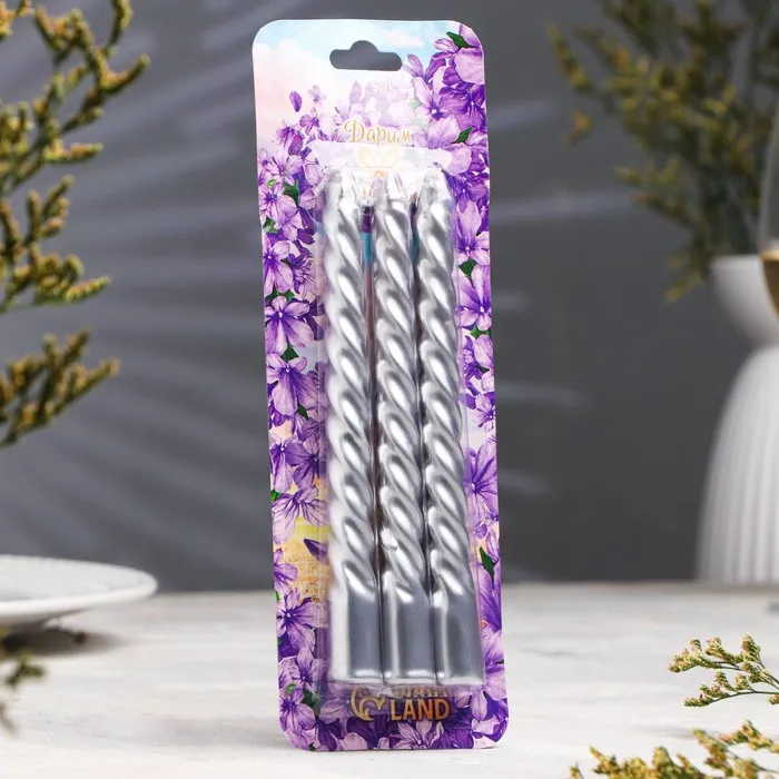 Набор свечей витых, 1,5х 15 см, 3 штуки, серебряный блистер