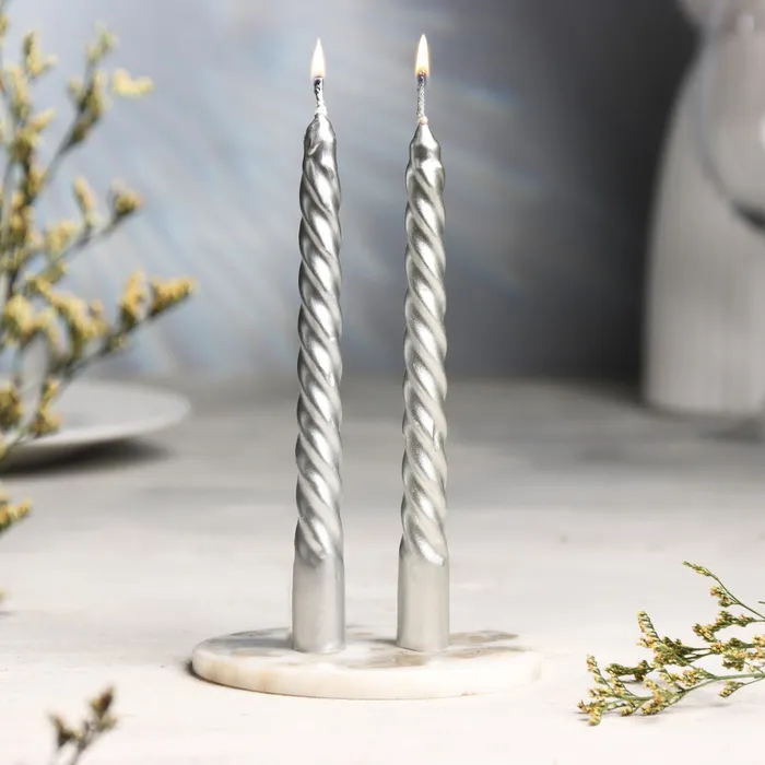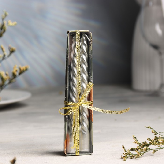 Набор свечей витых, 1.5×15 см, 2 шт. серебряный металлик