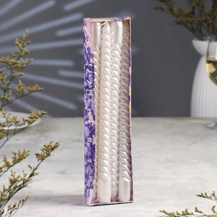Набор Свечей витых, 2,2х 30 см, 4 штук, перламутровый металлик — Характеристики
