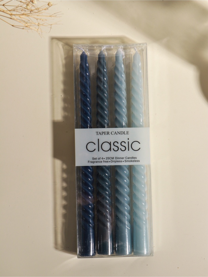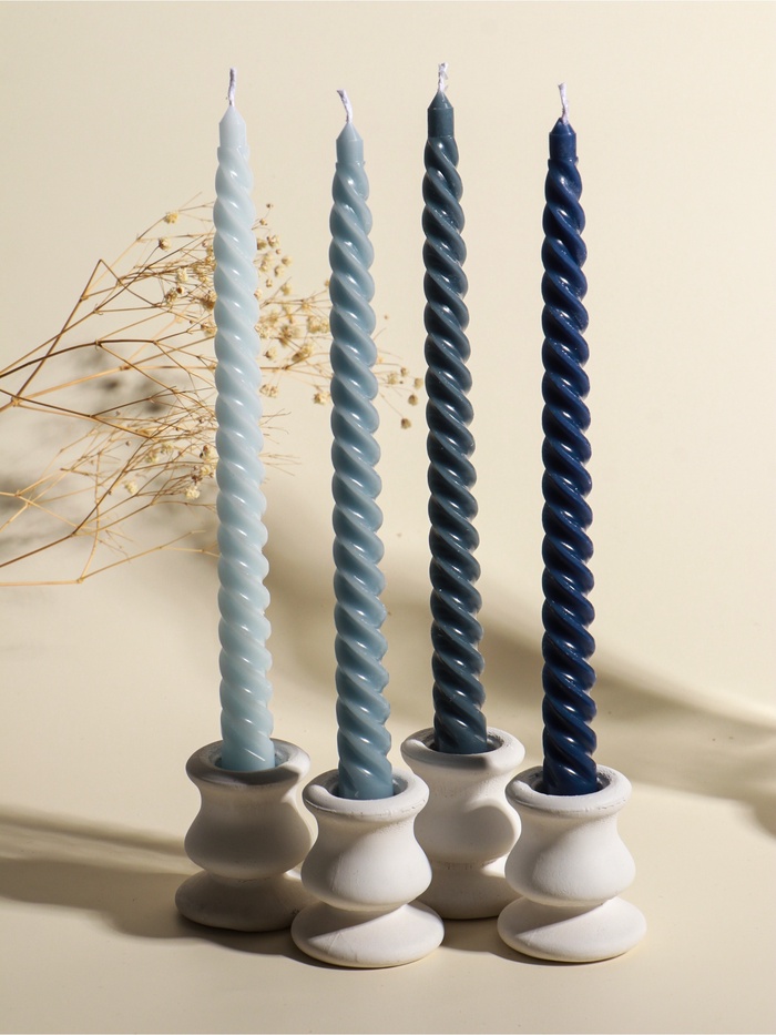 Этот набор серых витых свечей создаёт атмосферу умиротворения и стиля. Четыре высоких факела из чистого парафина готовы преобразить ваш вечер.