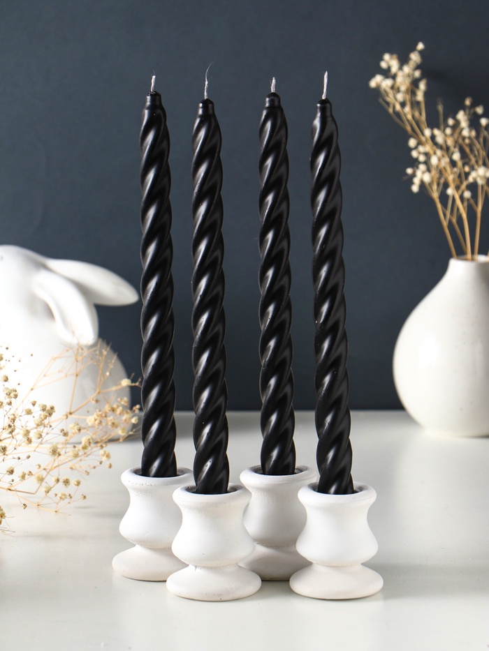 Эти витые свечи с сочным ароматом чёрной смородины создают тёплую и уютную атмосферу в вашем доме. Их пламя горит долго, наполняя пространство ярким и натуральным ягодным настроением.